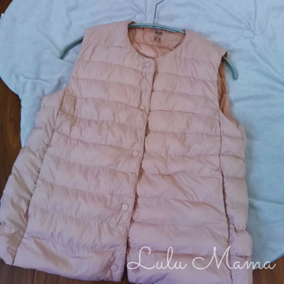 ユニクロの限定価格で購入したパフテックダウンベスト!くすみピンクのカラーがやわらかくてとても可愛いです。