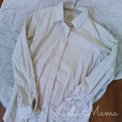 ベージュストライプシャツ(無印)|しっくりこず来春へ
