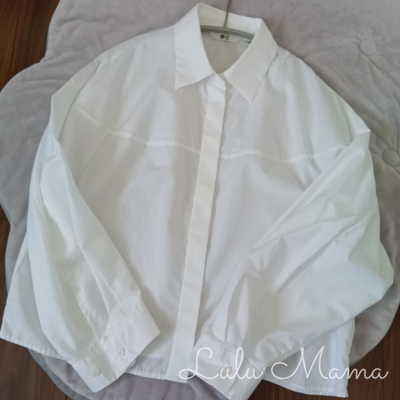 白シャツもずっと避けていたアイテムなのですが、ユニクロCのショート丈、コクーンシルエットの白シャツはパッと見てこれ好き!と思って買ってしまいました。