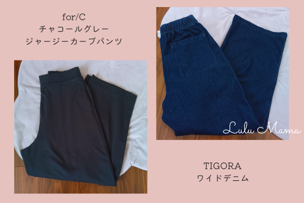 「今日は支援センターと買い物行こうかな」⇒ボトムスは柔らかくて動きやすいのがいい。フォーシーのカーブパンツだな。
