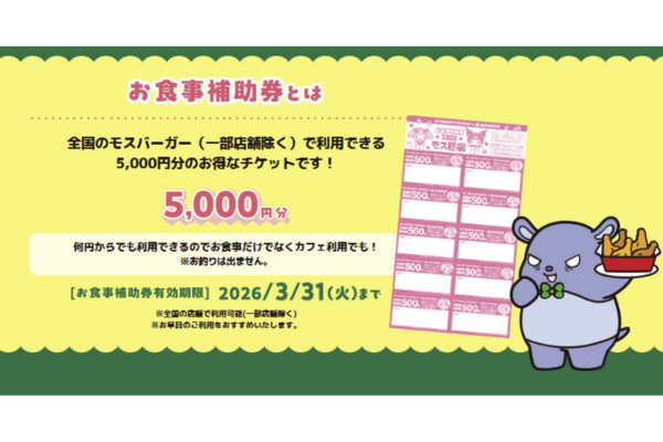 お食事補助券が5,000円+オリジナルグッズがついてくるモス福袋。5,000円なのでお食事補助券だけで元がとれます。