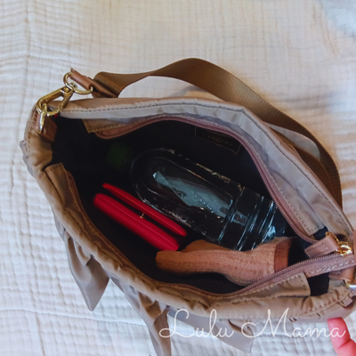 メインもチャックだから開閉しやすいです。子どもの送り迎えとかでいつもバタバタしているのでさっとモノが取り出せるって重要。