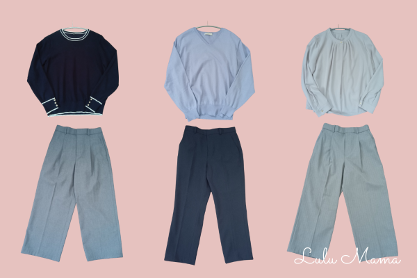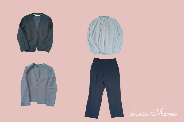 もう少しゆるめのオフィスカジュアルでもいいかなと思ったのですが、最初は多少カッチリめでいこうかなときれいめ多めです。(復帰後に徐々に調整しようかなという感じです。)